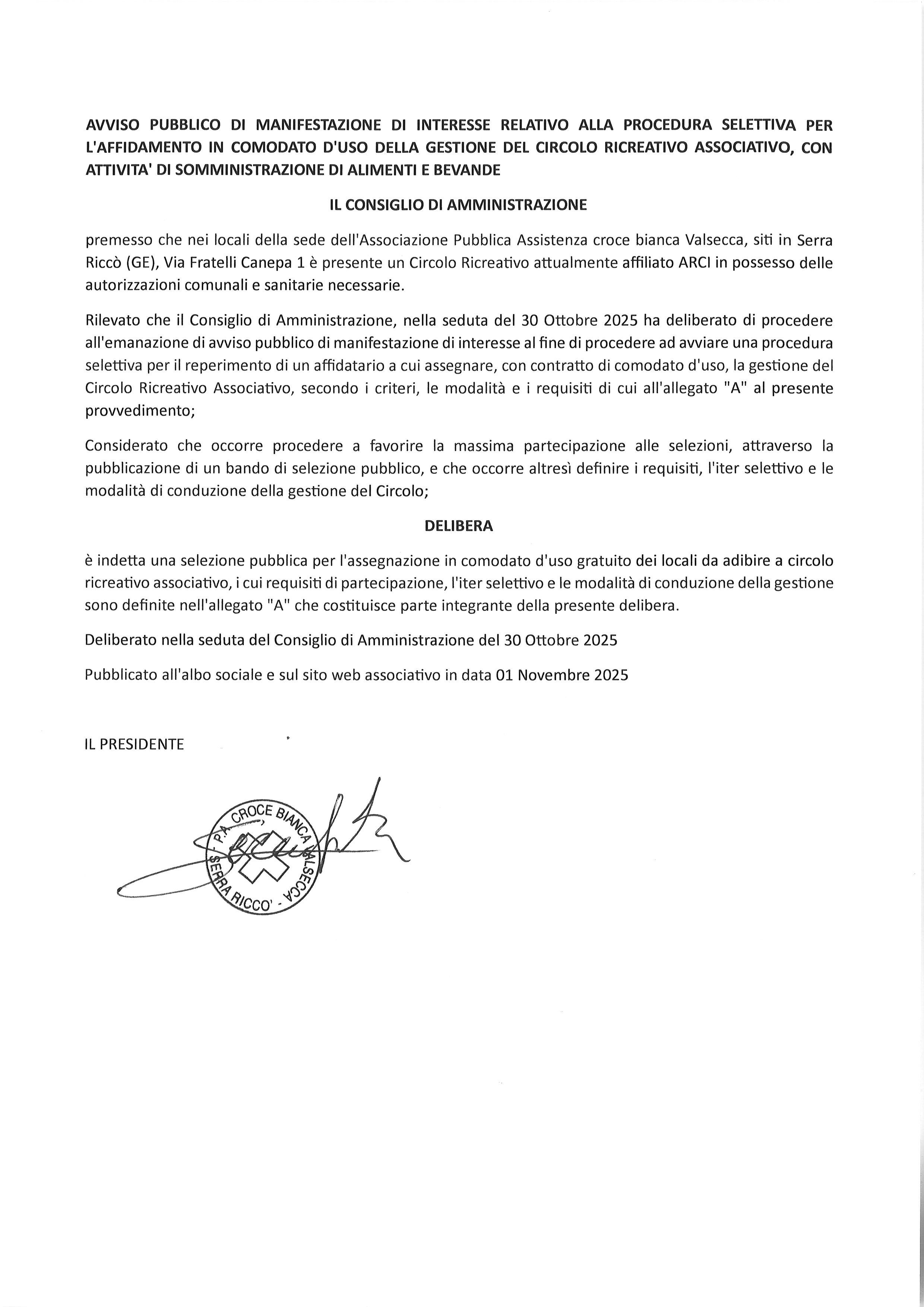 P.A.Croce Bianca Valsecca è un'Associazione Volontaria di Pronto Soccorso e di Assistenza Pubblica ONLUS fondata il 4 luglio 1948. Iscritta al Registro Regionale delle Organizzazioni  di Volontariato della Liguria  N.SN-GE-ASO-35/95